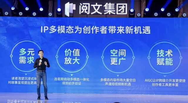 对此,阅文集团副总裁黄琰在演讲中给出了答案:抓住多模态平台赋能好故事一体化呈现、短剧等IP视觉孵化、AIGC技术助力三大新机遇。