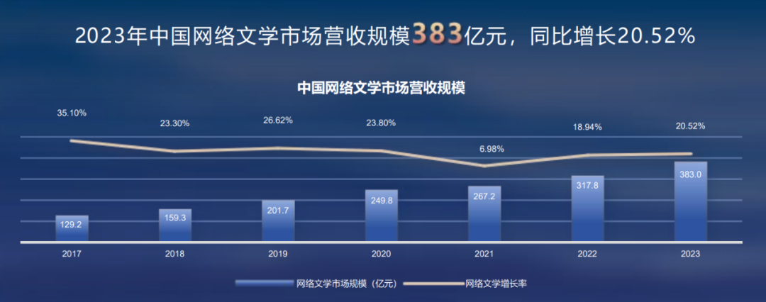 7月12日,在北京举行的第七届中国“网络文学+”大会上,中国音像与数字出版协会发布《2023年中国网络文学发展报告》。报告显示,2023年中国网络文学市场营收规模383亿元,同比增长20.52%。
