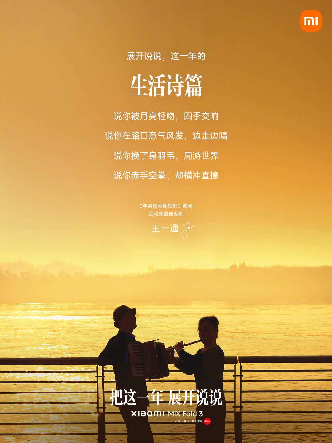 电影《宇宙探索编辑部》里,由编剧、主演王一通写的诗格外让人印象深刻,而他为小米写的文案《把这一年 展开说说》依旧惊艳。原来生活中看似不起眼的碎片,也能被文字松弛又真实地讲出来。