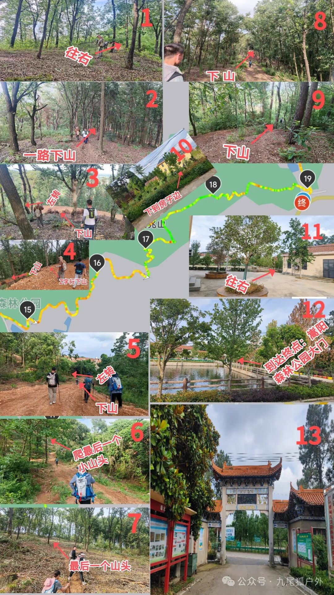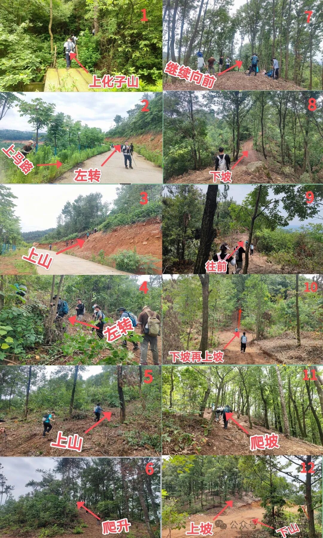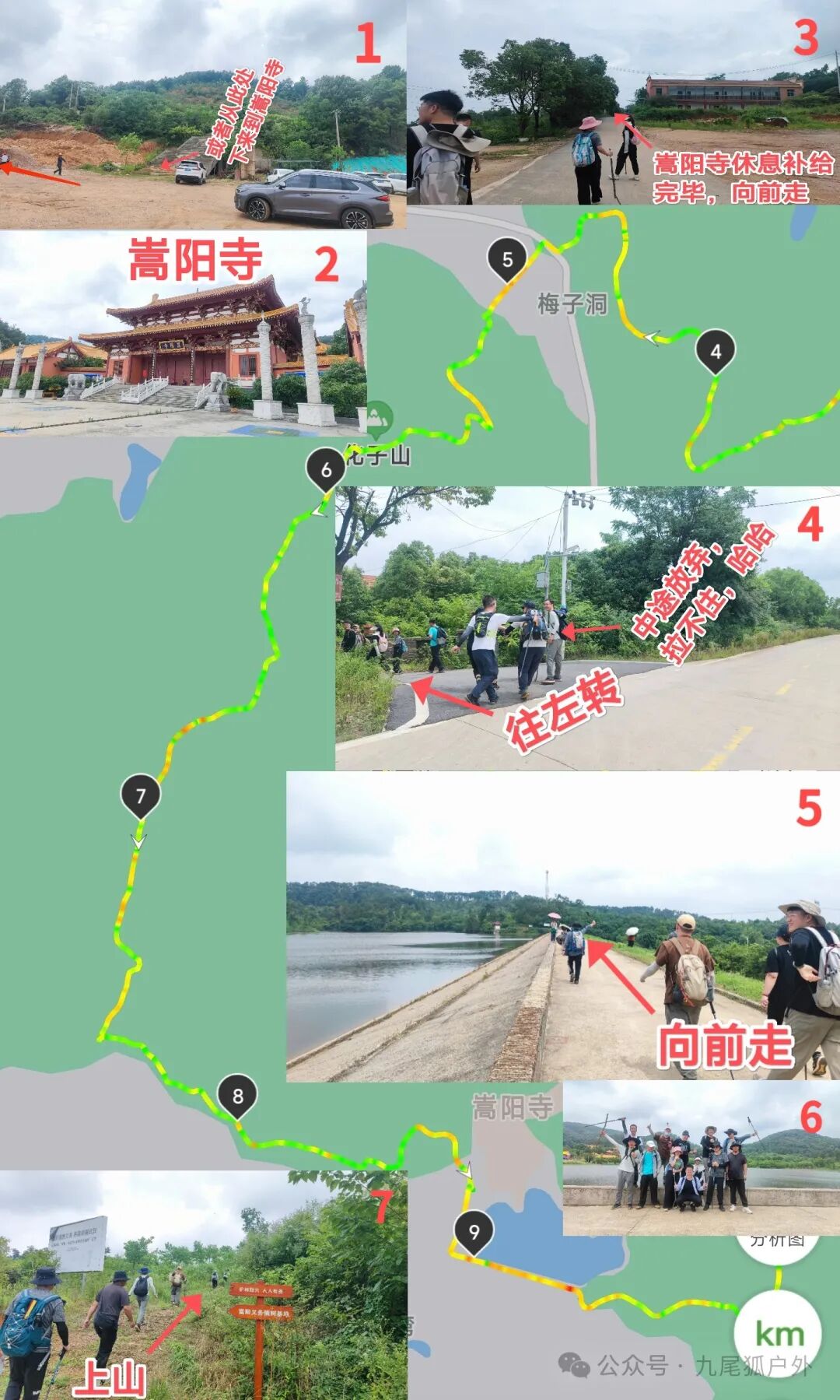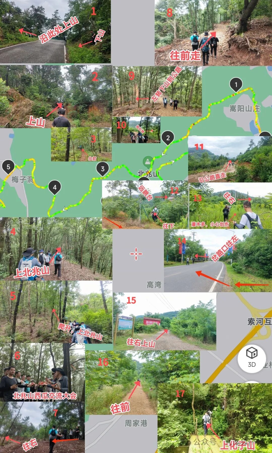 ☑️路线:嵩阳山庄→北兆山→化子山→嵩阳寺→钓鱼台→天王山→分金岭→北兆山→嵩阳林场☑️起点:蔡甸嵩阳林场⭐难度:整体难度不大,距离稍远,后半段公路较多。🍱补给:带两瓶水,中途嵩阳寺有小卖部(泡面饮料零食)。☑️路线详情:1️⃣起点至5km处:导航至嵩阳林场,从嵩阳森林公园大门进去免费停车,进大门后直走800m右转上山,一路上下坡,途经两段公路后上北兆山,北兆山下到第三段公路右转,经过眺望台往下到第四段公路,在公路对面左转上化子山。