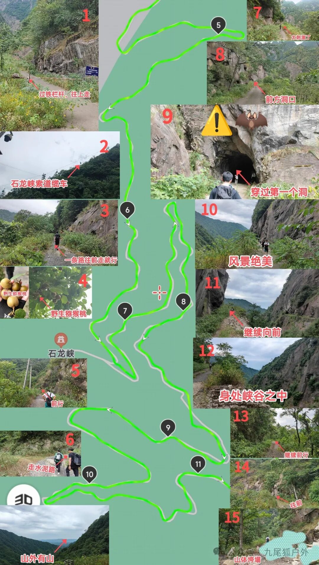 2️⃣5km至11km处:会陆续看到石龙峡的索道缆车,8月份左右随处可见的野生猕猴桃,穿过两个洞,经历山路十八弯。