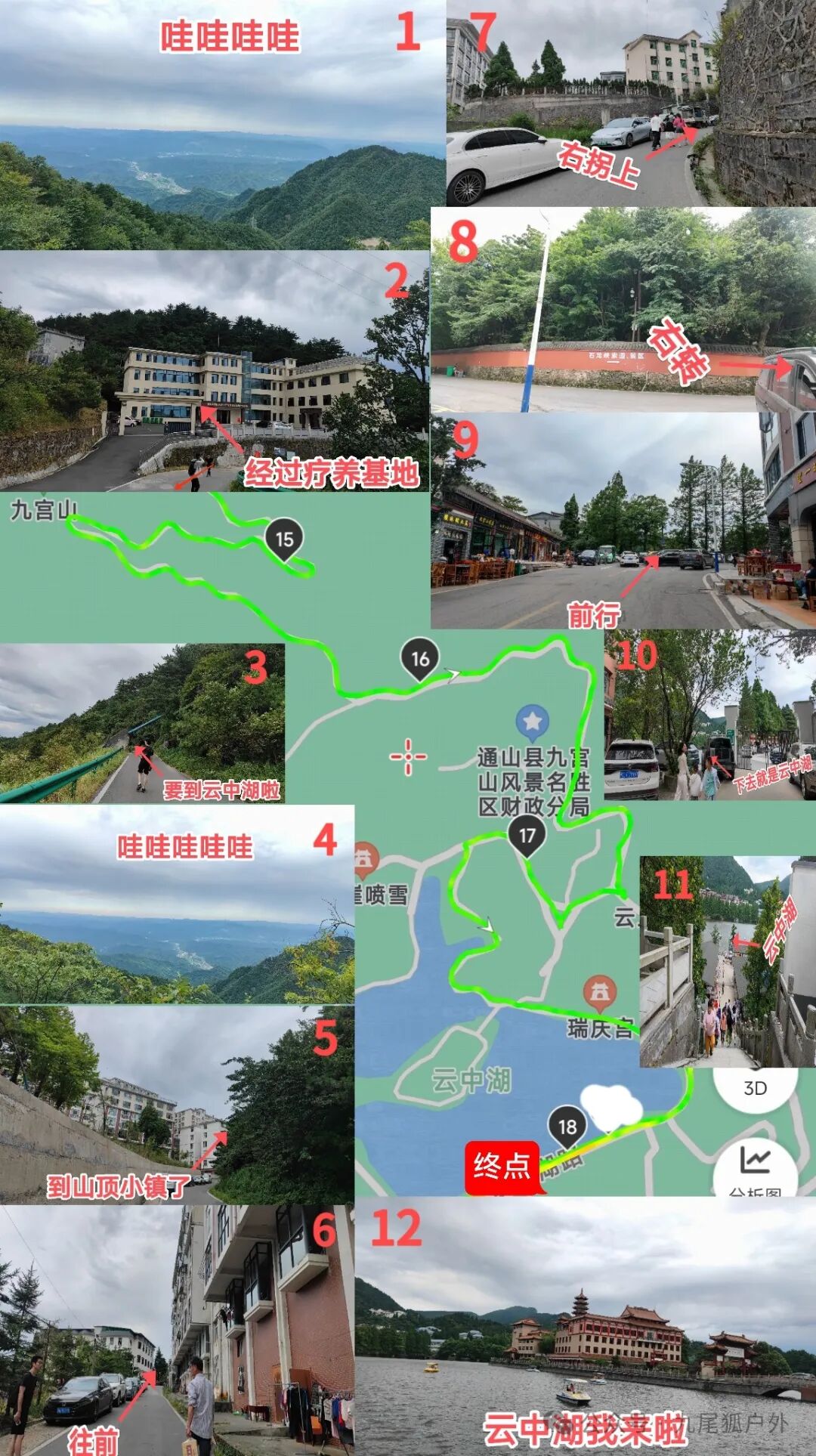 4️⃣15km至18km处:往上走,有好几处适合眺望峡谷的地方,景色宜人很是壮观,经过一处疗养基地,再往上就看到山顶小镇了,然后右转直行下楼梯到达云中湖。