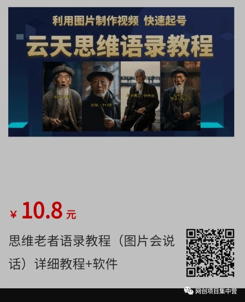 大家好,今天给大家带来的项目是《思维老者图片说话教程》,简单利用图片制作视频快速起号,最近刚火起来的一个项目,流量可以说是非常的大,作品制作起来也是非常的简单,熟练之后十分钟就可以制作一个作品。涨粉之后可以带货卖思维类的书籍,也可以批量起号卖号,不用担心变现的问题,好项目要抓住机会,现在还是红利期,抓紧搞起来,追风口,猪也可以飞。