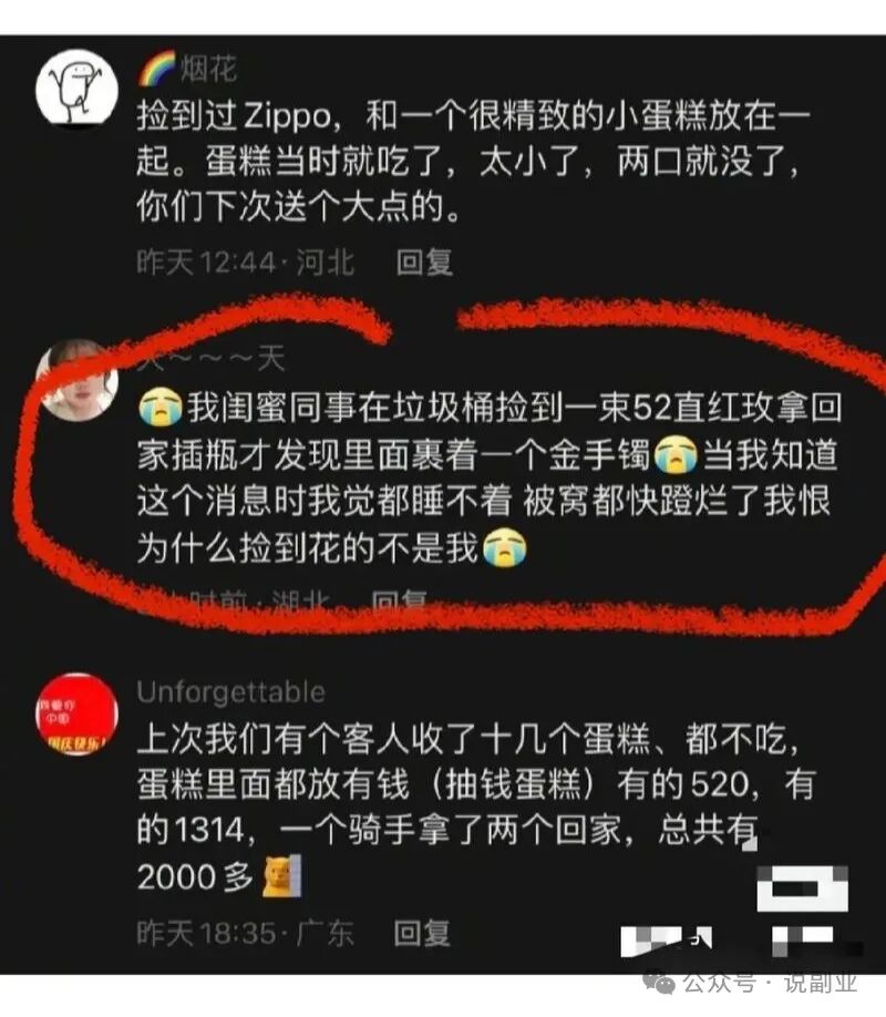 不过大多数都是各种精美的鲜花,其中玫瑰花最多,另外还有包装精致的零食盲盒,甚至有网友还在里面捡到过现金。