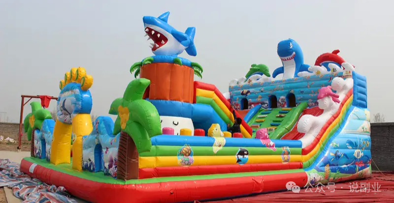 再看充气城堡,你别看那么大的充气城堡,其实投入也就是三四千元上下,成本不是很高。