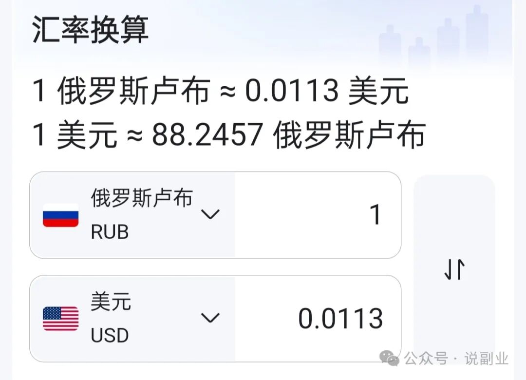 这是不是意味着,把人民币换成美元,再用美元换卢布,最后用卢布换人民币,就能赚钱呢?出于好奇我就用汇率换算来验证。