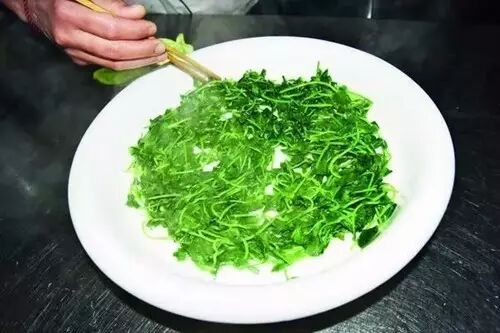 3、金花菜洗净,过油,入盘中打底。