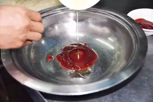 将郫县豆瓣700克,葱、姜、蒜各50克,干辣椒节300克,麻椒100克与熟菜籽油1千克,葱油500克炒香,加二汤5千克熬制5分钟,过滤即成。