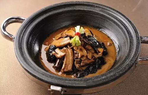 干牛肝菌、干老人头菌克,干鸡枞各50克,宁乡花猪肉100克,葱段2克。