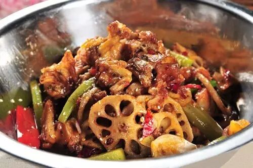色拉油1干克(约耗100克)。 制作:1、先将所有原料切成长6厘米、宽4厘米的片,飞水至八成熟待用。