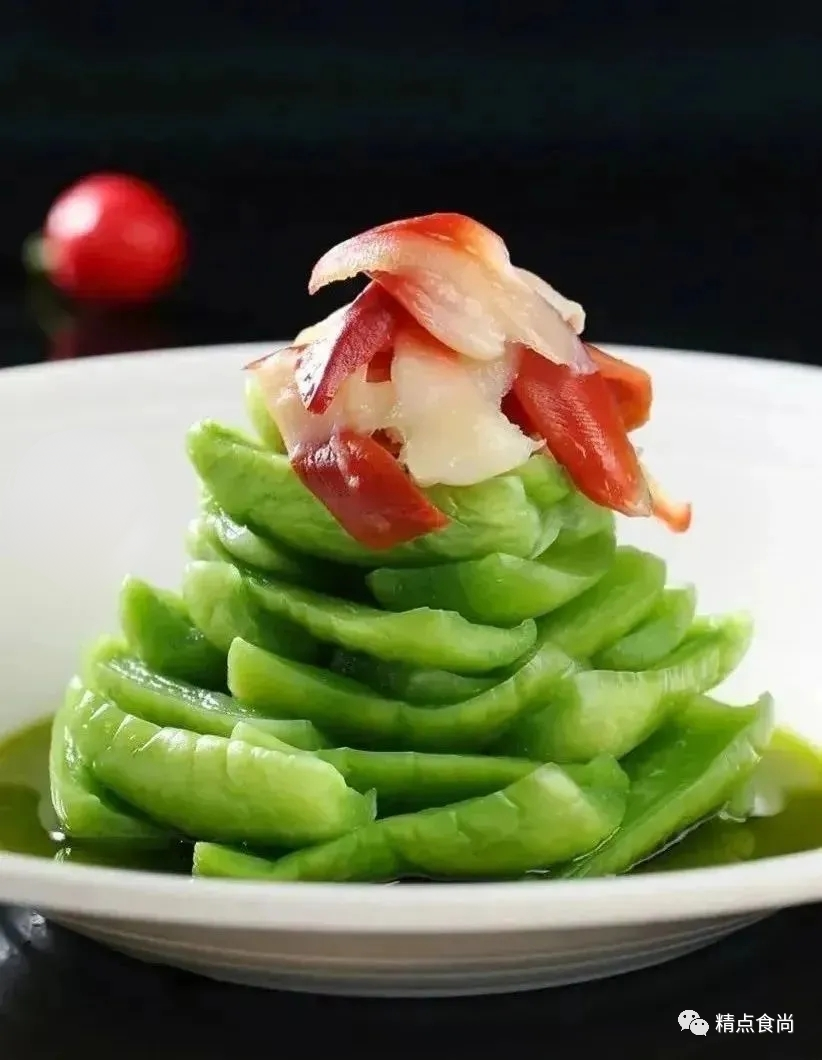 1.北极贝治净,改刀成厚薄均匀的片,玉女瓜去皮,对剖开,并去掉瓤心。