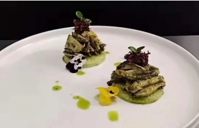 牛肉是最常见的食材, 一般牛肉的纤维比较粗,这道菜选用的是雪花牛肉的肉眼部位,不放任何的传统香料,目的就是保留牛肉的原汁原味,用文火慢炖,逼出牛肉的香味,口感软糯,入口而化。