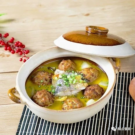 3. 另起锅下豆油,姜,葱,鸡汤800克,炸好的丸子,炖二十分钟后下萝卜,黄鱼鲞,小火再炖二十分钟调味即可;