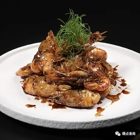 2. 热锅入黄油10克,梅菜汁20克,下入炸脆的虾翻炒即可。