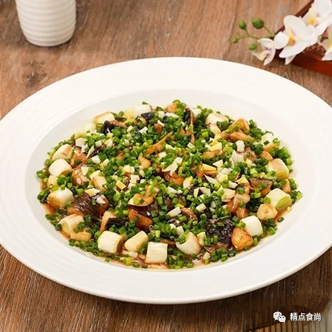 4. 焖好鮰鱼装盘,笋粒用葱油炒熟撒在鮰鱼上,再撒上小葱花即可。