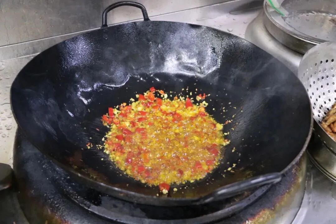 炒制时要将泡菜的水分煸出,以免香味欠缺、锅气不足。