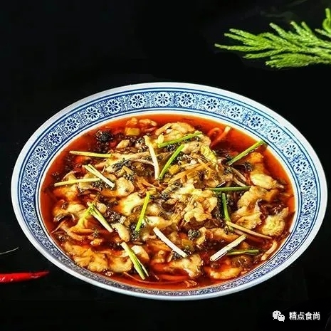 鱼汤 陈香豆瓣30克 红油豆瓣30克 滋粑辣椒50克 洋葱15克 姜片15克 大葱15克 香菜15克 芹菜15克,制作,净锅上油下陈香豆瓣,红油豆瓣,滋粑辣椒炒出香味,下3000克高汤,再下姜片,洋葱,大葱,香菜,芹菜,熬出香味,打去渣。就是煮鱼的汤。
