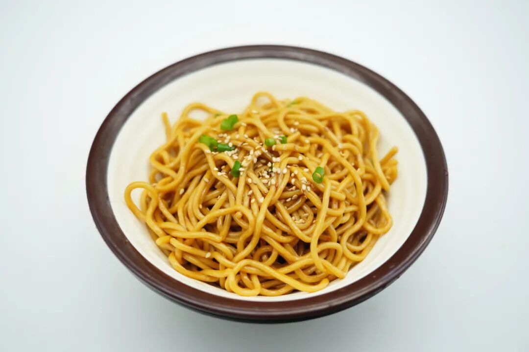 熟处理:碱水面150克放入沸水锅内,大火煮至七成熟时捞出,控干水分,直接倒入调好的酱料里面拌均匀,最后撒上花生米5克即可。