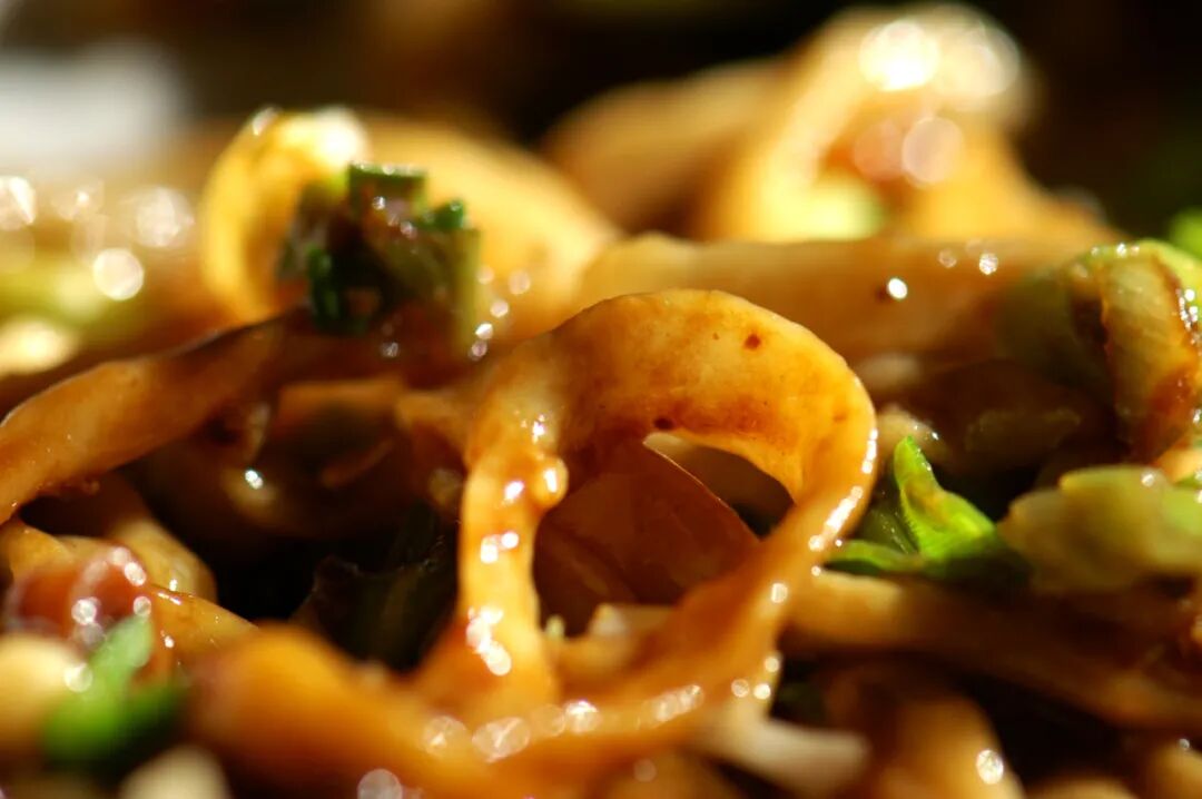 要想把这碗镇店招牌“鱿鱼面”做好,鱿鱼、海带、玉兰片三种原料缺一不可,只有三大“主力”协同进攻,才能制出那鲜香味美的鱿鱼臊子。走菜时,将其与煮熟的面条组合上桌,汤鲜味美,香气十足,鱿鱼略带嚼劲,面条劲道爽滑,生意最好时,一天就能卖出1000碗!