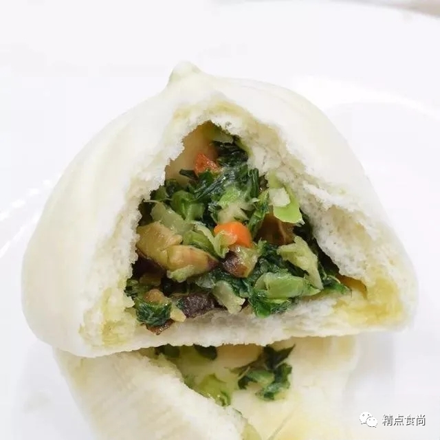 做法:先把油菜、凤尾菇和香菇洗净剁碎,油菜稍微挤出一点水备用,豆皮面筋切碎,所有配料拌匀即可。面皮 30 克,馅 25 克,包好后冬天醒 30 分钟,夏天醒 10 分钟,中火蒸 7分钟。