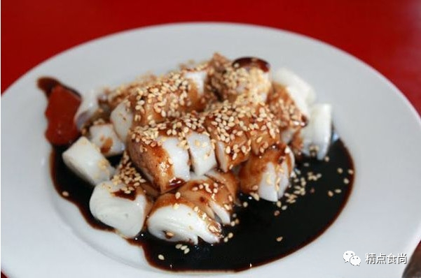 3、将烧鹅汁下入净锅中,加入适量高汤稀释,烧开后盛入小碗中,跟烧鹅一同走菜,上桌后,由服务员将汁水淋浇在肠粉表面即可食用。