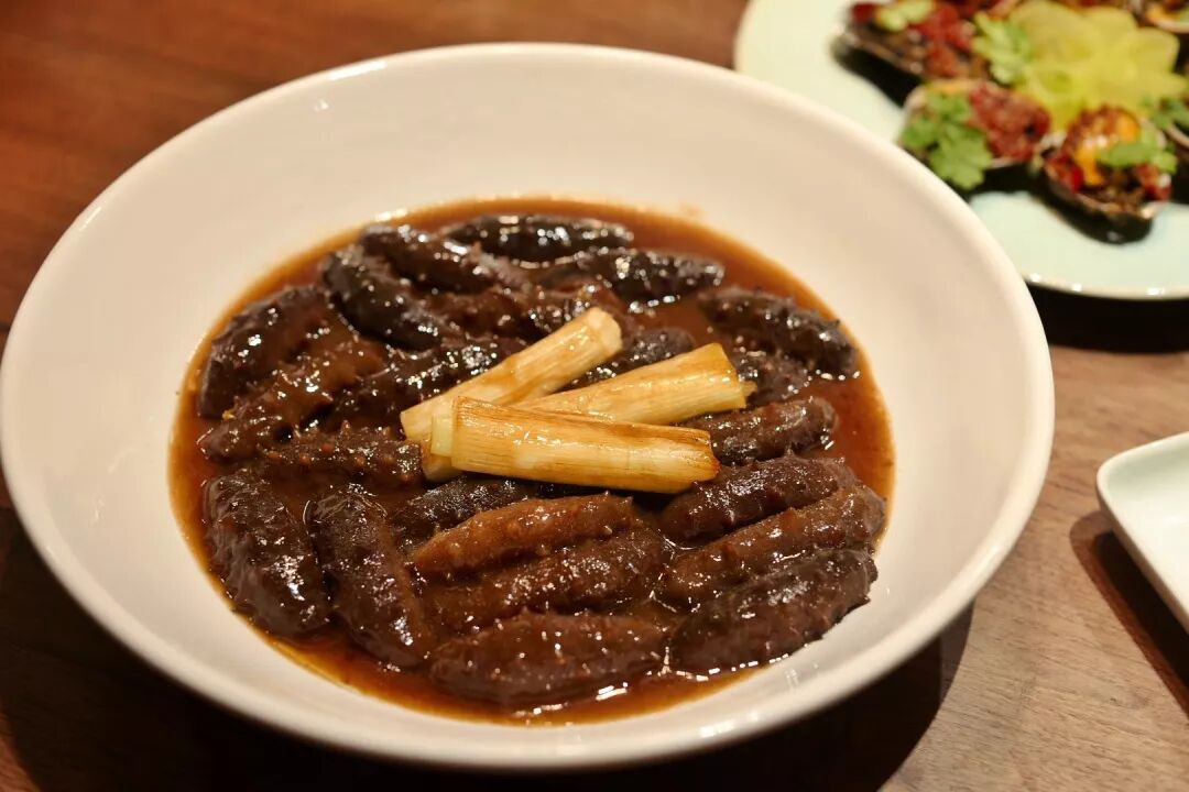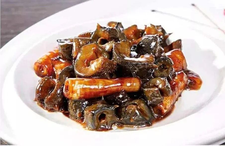 葱烧海参,是中华特色美食,鲁菜经典名菜。从山东源入,以水发海参和大葱为主料,海参清鲜,柔软香滑,葱段香浓,食后无余汁。是“古今八珍”之一,葱香味醇,营养丰富,滋肺补肾。