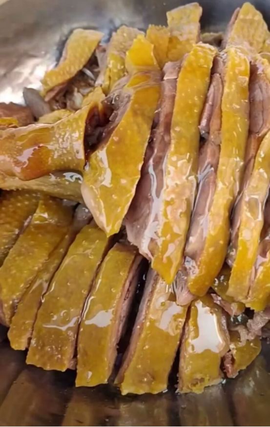 先制成食盐的饱和溶液,加入姜片019大茴香粉0.05%,香葱0.1%~015%,这种离称为新卤。新卤经过20~30次烧,成为老卤。老卤使用过程中,应始终保持饱和状态。复鹵时将盐卤从右翅开回处灌入腹腔并将鸭子漫入鹵缸中,经过2小时左右,即可出缸起挂。复鹵的鸭胚,用沸水使子向收,外紧,外形饱满,然后用直径2厘米、长10厘米左右的中空竹管插入肛门,并将少许生姜,大茴香、葱放入腹腔