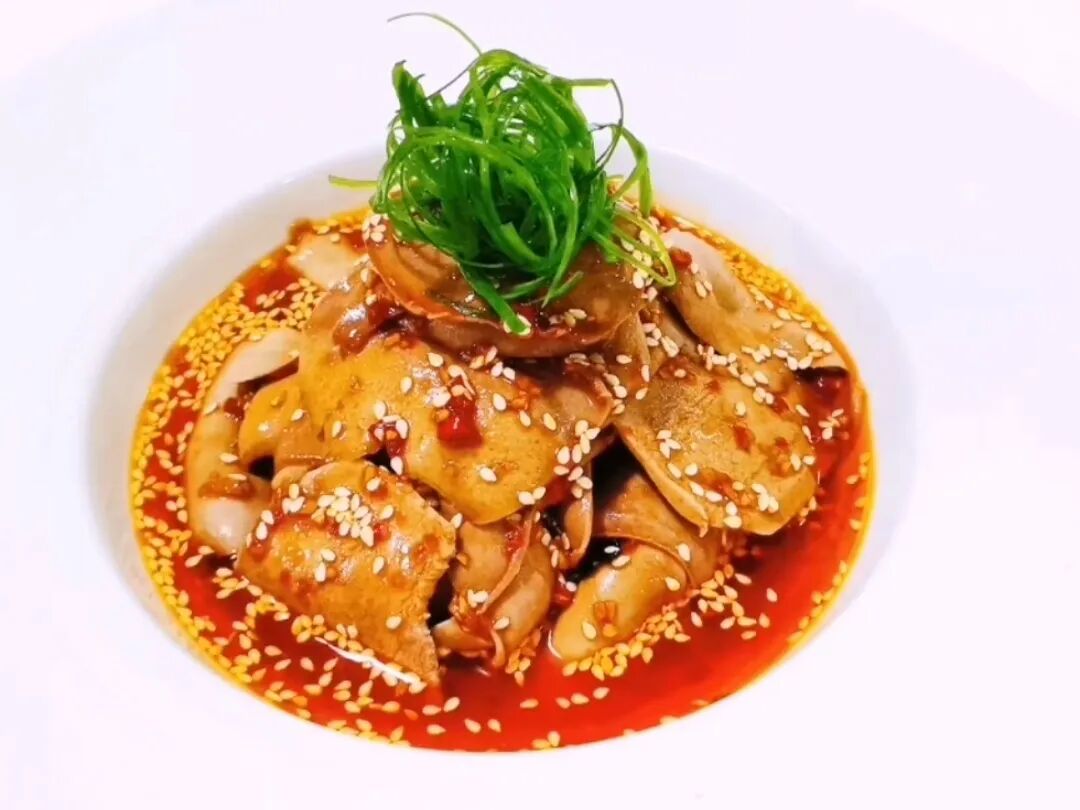 7、金钱肚加姜葱料酒煮熟,片片,金钱肚 200 克.烧椒酱100克拌匀