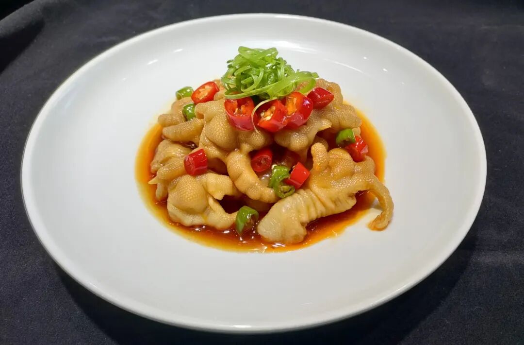 藤椒鸡不同于一般红油凉拌菜,而是具体鲜麻、淡辣、清香的味道,红绿相间,鸡肉嫩黄,引人入胜。