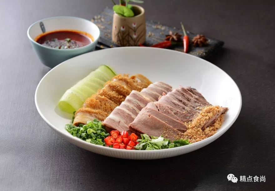 1. 熟牛腱切成薄片,整齐铺于浅盘中;