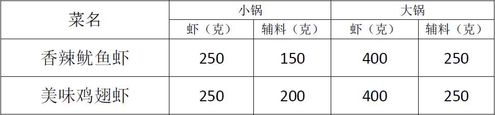 菜品及配料重量