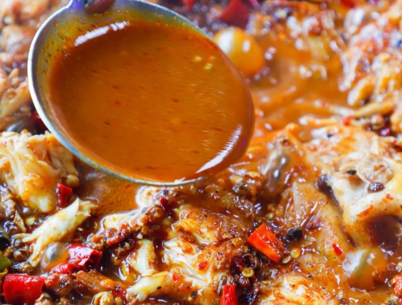 制作流程:锅入香辣红油200克烧至150度,下入姜末25克、蒜末30克炒香,依次放入自制豆豉酱90克,厨邦酱油10克,啤酒150克,鸡高汤230克,芝麻油15克调制大火收紧汁,浇在提前烤好的鱼上面即可。