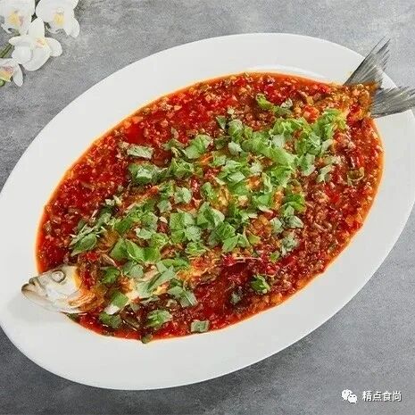 4. 将蒸好的鱼撒上藿香碎,淋上酱汁,撒上葱花即可。