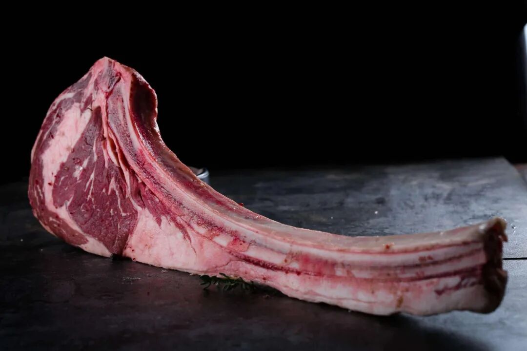 这道牛大骨是元老级的招牌菜,吃过的人都称赞其香味浓郁、形式特别。制作时有五个关键点:一是选料,从内蒙进购的牛腿筒骨,约1尺来长,成年人手臂粗细,每根重6斤,其骨腔中富含骨髓,肉中带筋,十分有嚼劲;二是酱汤,以猪棒骨特别吊制,加北方的干黄酱、四川的红酱油调味,从开业使用至今,滋味深厚;三是火候,酱制时要用小火,加热时汤面平静,不能有气泡产生,保持此状态煨6个小时,使牛骨上附着的筋和肉软而不烂,骨髓也不会流失;四是走菜形式,牛骨以直径一尺的木桶盛装,竖立摆放,浇入酱汤持续保温,呈现最佳的口感与味道;五是就餐方式,每根骨头比人脸还大,上桌时配着吸管和刀叉,先吸骨髓,再用小刀片下牛肉进食,粗犷的方式获得男性食客的一致喜爱,每天要卖百余根。