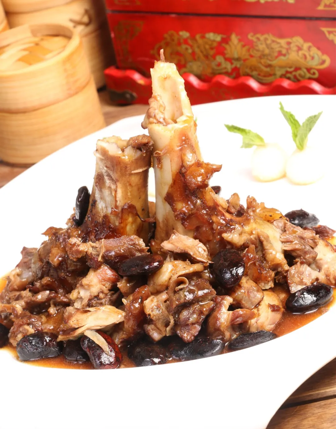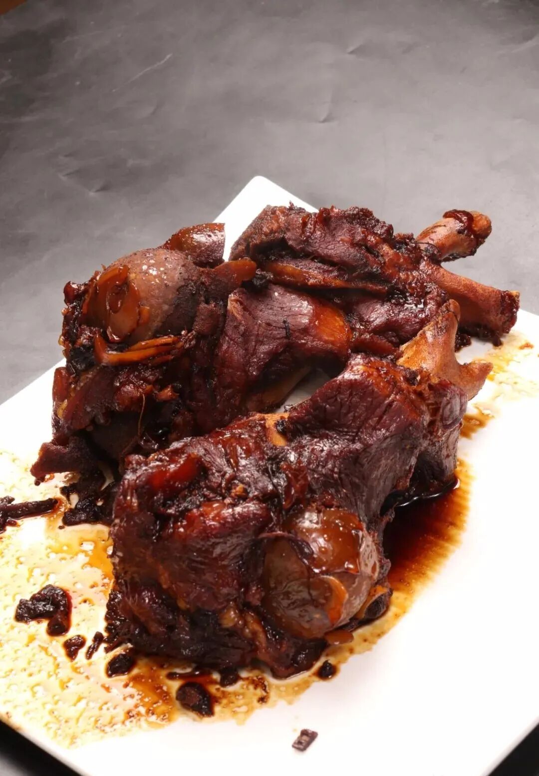这道菜所用棒骨是由乡下送来的新鲜货。先用清水煮熟,然后加入卤水和自制酱油回锅烧制,大火收浓汤汁,最后小火炒入味,成菜不留汤。这样一来,棒骨不但更入味,也保留了猪肉本身的香味。