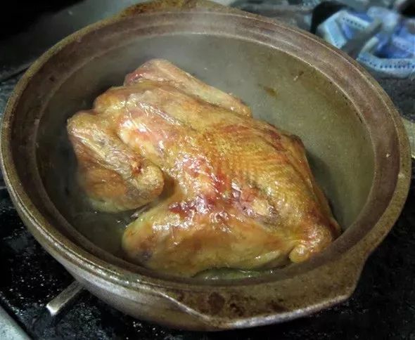 3、先入锅蒸20分钟,再放入烤箱烤至鸡皮金黄。
