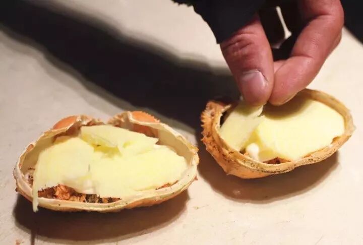 昆明“触店夜宴”餐厅就用这种蟹斗推出了一道热销菜品,这道菜中的蟹肉与香菇拌匀,无需调味,吃的就是这两种原料本身的鲜美;先裱沙拉、后铺芝士烤熟,入口分别能尝到奶香、甜香、鲜香三种层次的味道,做法简单,却很有特色。