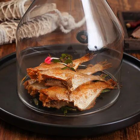 2. 将耗儿鱼油炸至表面金黄捞出放入调制好的香辣卤水汁中浸泡成熟入味后捞出;