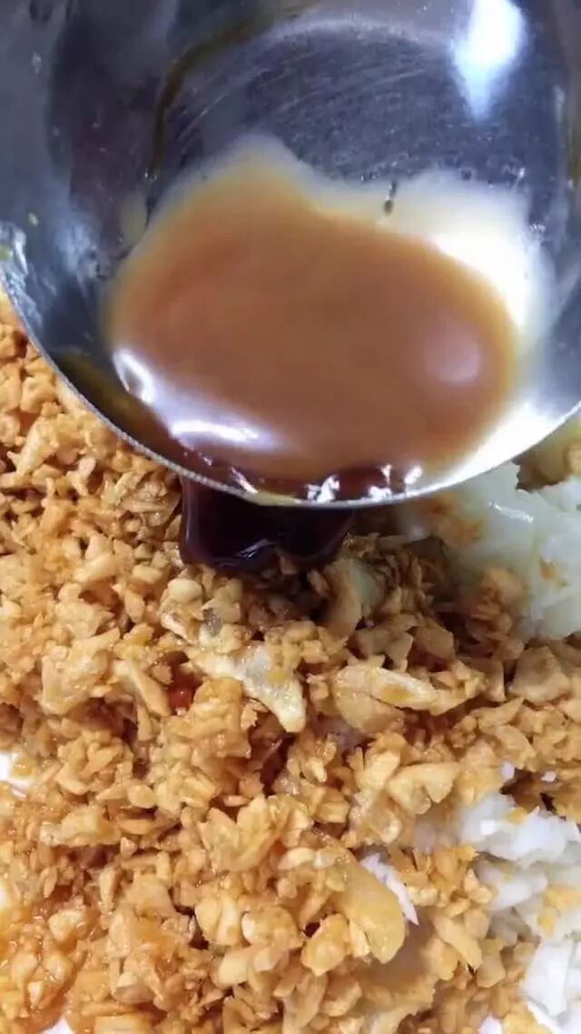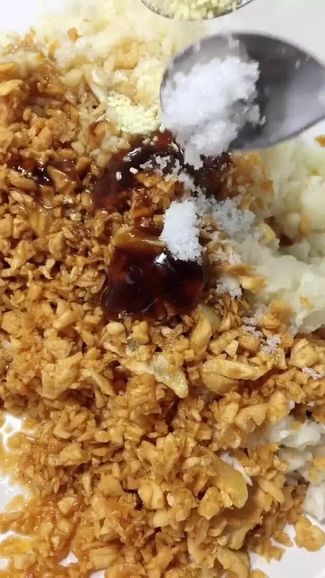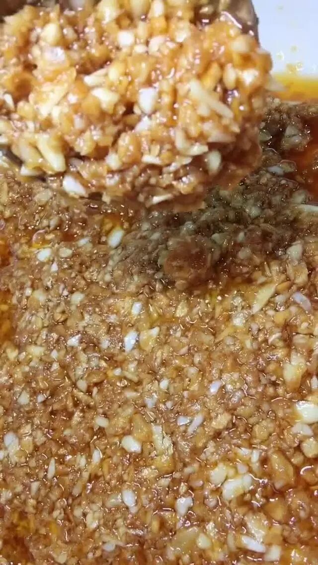 5、将另外一半的生蒜(银蒜)混入”金蒜”中,再加入适量的生油、海鲜酱油、蚝油、鸡汁、鸡精、白糖,然后将它们搅拌均匀即可,传统的金银蒜蓉制作完成