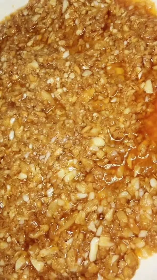 食材配料:大蒜、植物油、连葱、生姜、洋葱、生抽、海鲜酱油、蚝油、鸡汁、鸡精、白糖、红油。