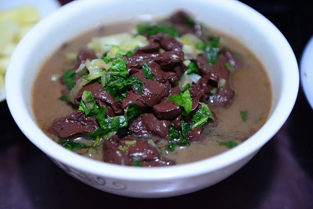 将鲜嫩无骨的原料切成薄片或细长丝,放入沸汤中涮至断生捞出,佐以事先兑好的调味汁食用的一种烹调方法。特点:主料鲜嫩不腻,汤多而清淡,鲜嫩爽口。