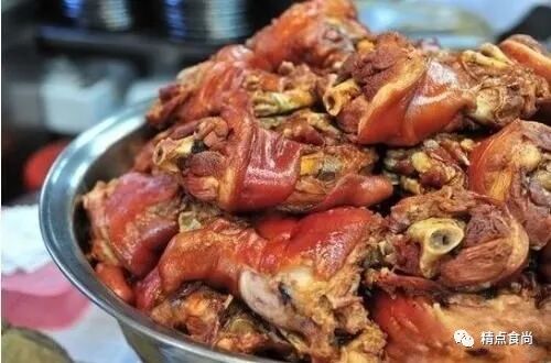 3、将水.所有调味料入钢锅中烧开.桶底垫竹网将猪脚放在上面.大火烧开转小火卤一小时 (大火后果自负)关小泡3O 分钟,捞出刷上香辣油,