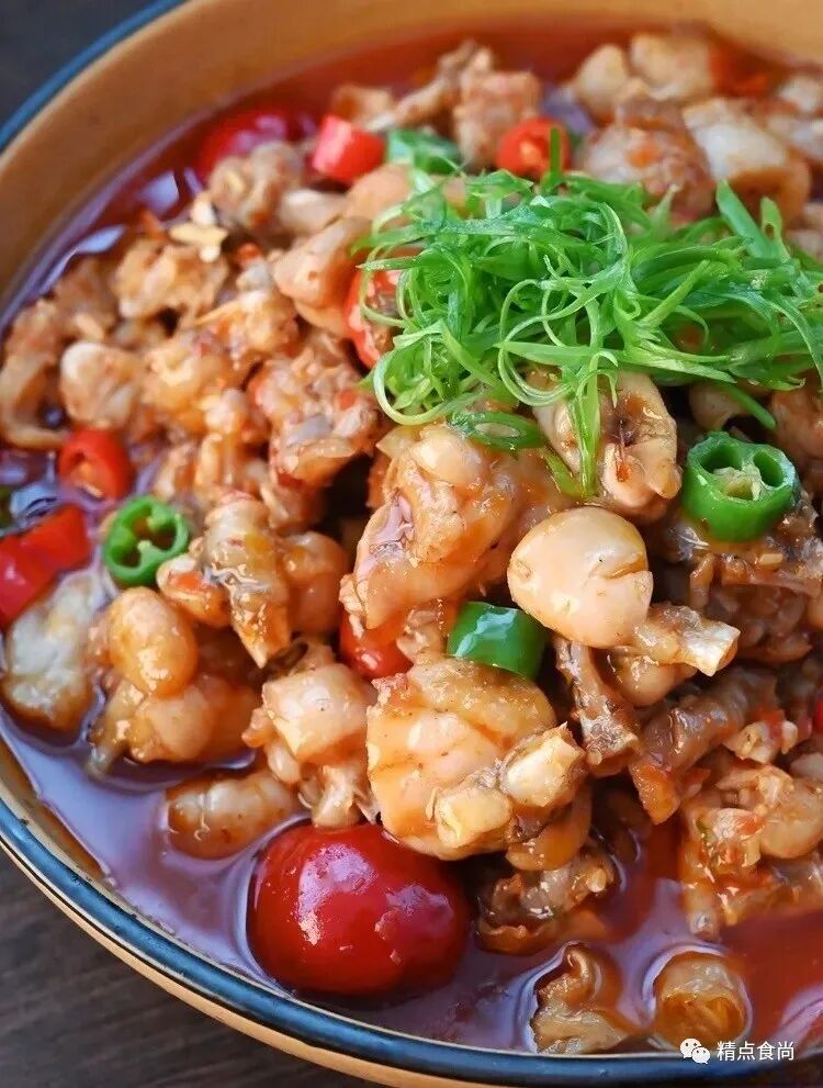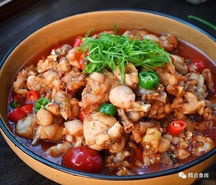 5.烹制调味:炒锅上火放底油烧热放入蒜子、醋姜小火煸香加入珠子泡椒,腌好的牛蛙继续煸炒至生蛙表面成熟变色时,加入热汤,改中火焖至生蛙完全熟透,调入盐、鸡精,确定口味后大火收汁,淋香油、撒葱花出锅即成。