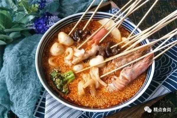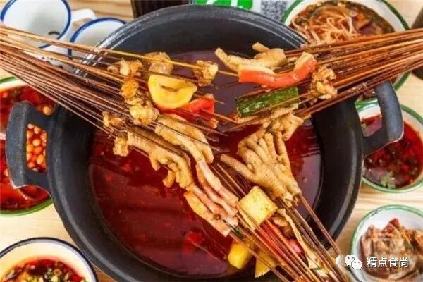 素菜可选海带、豆腐皮、土豆、莲藕、木耳、竹笋等,以上材料分别改刀成片或直接穿成小串下沸水锅中煮至断生捞出入凉开水中冷却滤干水份,放入麻辣红汤料中浸泡20分钟淋上红油即可出售。