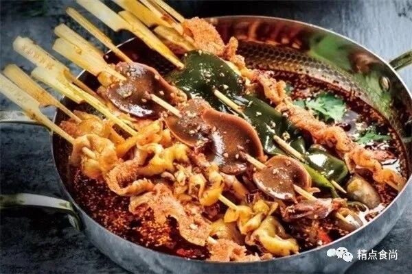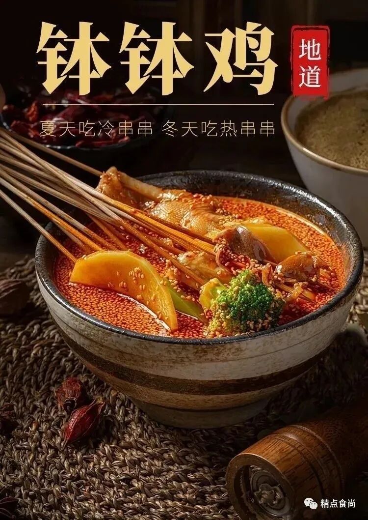 钵钵鸡有上百年的历史,起源于四川乐山一带,是当地的传统佳肴,钵钵其实就是瓦罐, 钵内盛放配以麻辣为主的佐料,(有的根据当地口味的不同,添加了藤椒油,风味有所不同,)菜品在特珠殊加工后用签串制,晾冷浸于各种口味的佐料中,食用时自取自食,除味道悠长外更添情趣盎然。