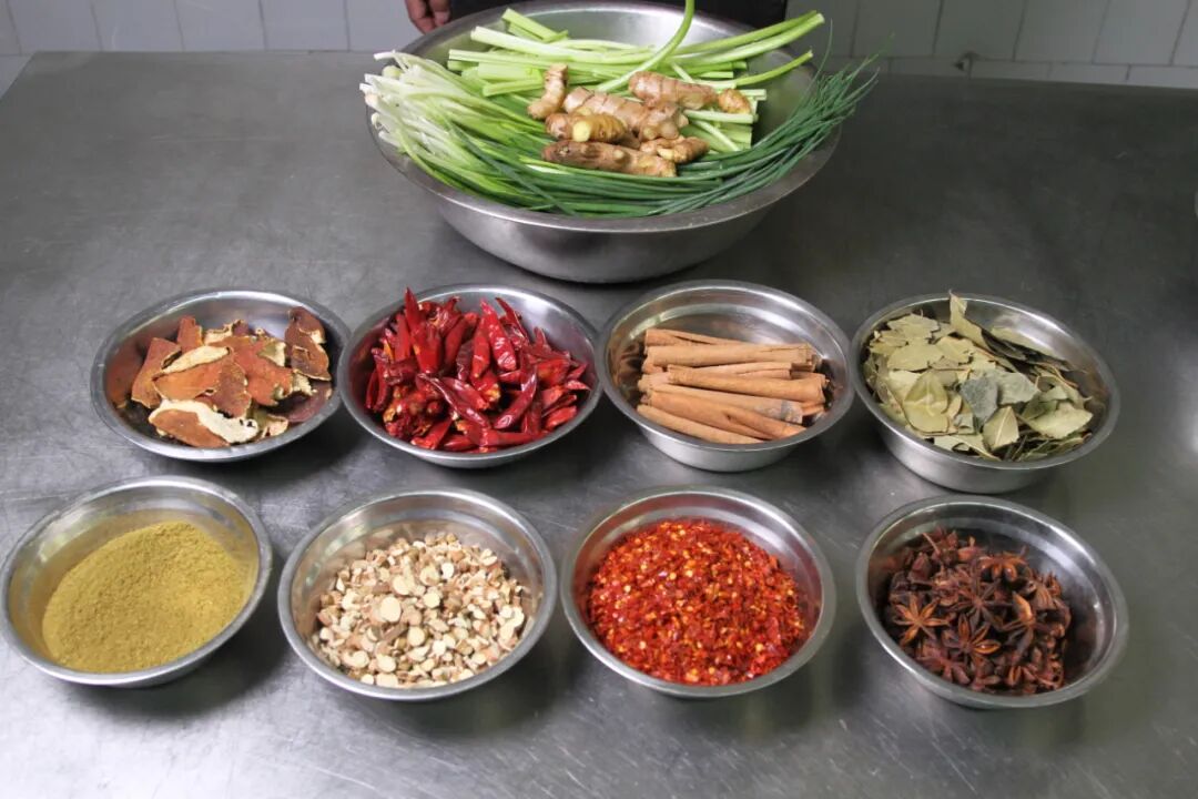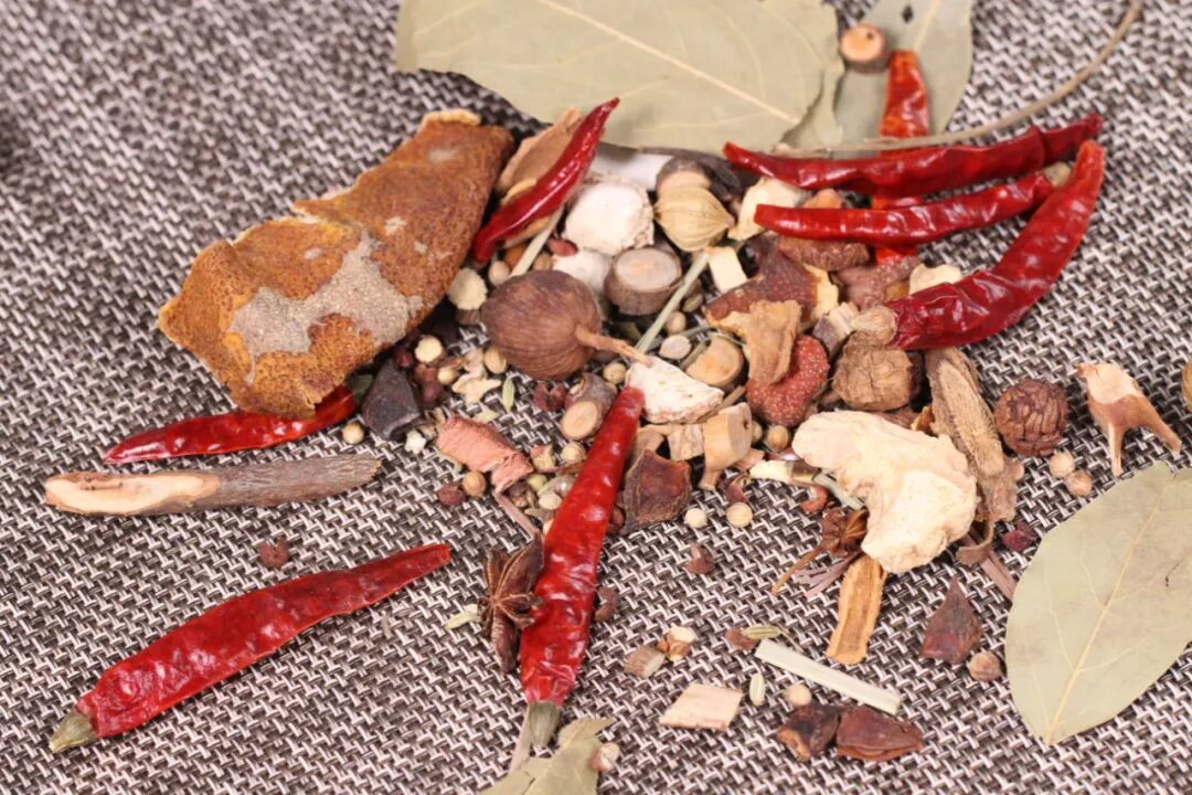 大料20g、干姜5g、小茴香8g、花椒18g、陈皮6g、花椒18g