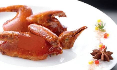 随着制作工艺的不断发展,“红烧乳鸽”逐渐形成了熟炸法、生炸法和烤制法三种制作方法。而现在,“红烧乳鸽”的做法也在不断进化,从原来1.0版的红烧乳鸽,晋升为3.0版的玻璃脆皮乳鸽,演变成皮亮如玻璃、皮脆肉嫩、一口爆汁的独特风味。