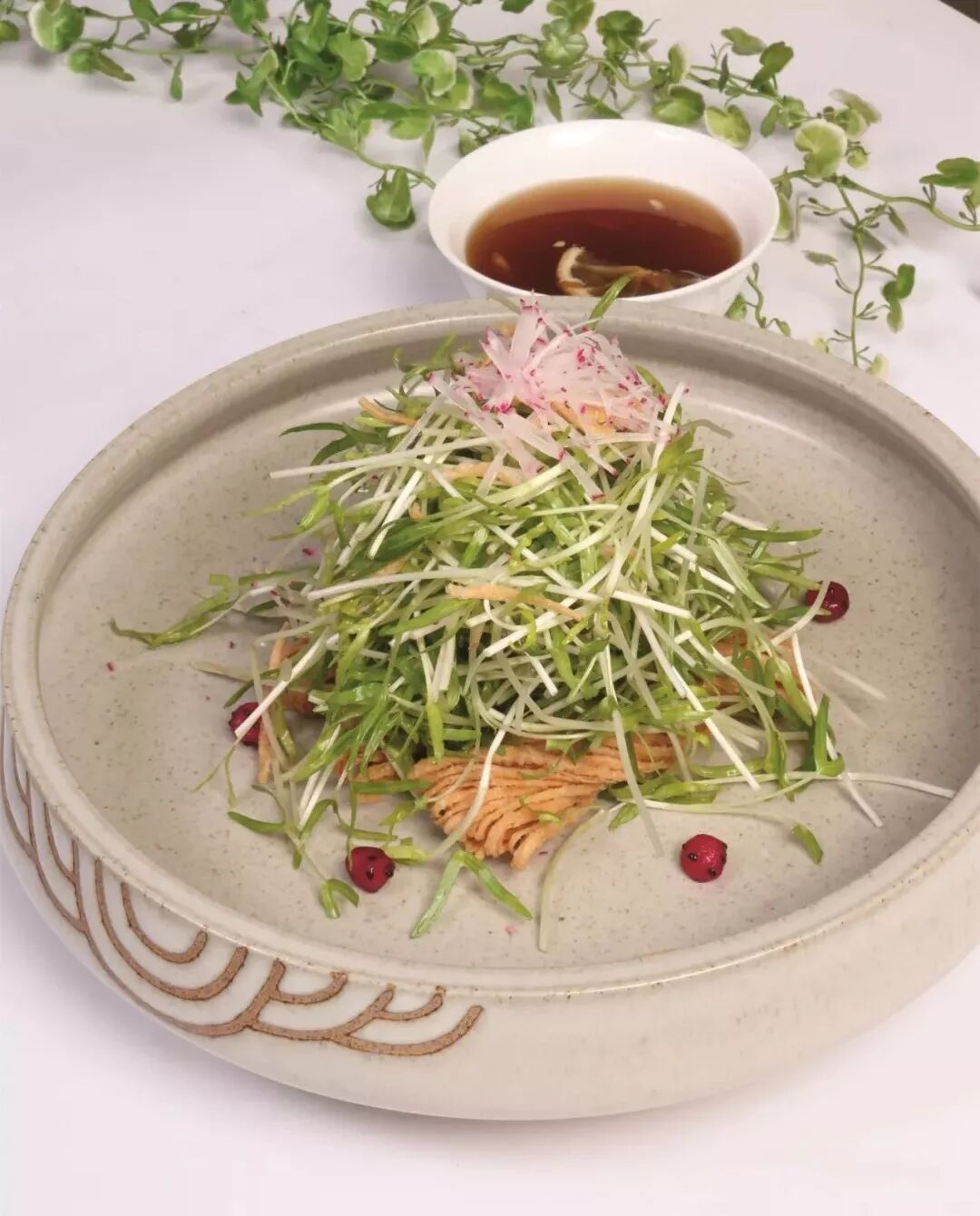 冰鲜小鱿鱼与鲜美嫩笋完美结合,再淋少许藤椒油和木姜子油,菜品口味格外清香开胃,适合春夏推出。