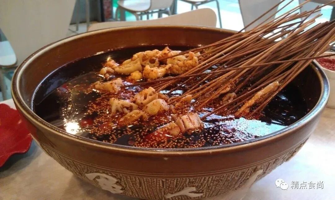 油烧九成热,冷3成后放入香料和葱类炸干捞出,放入紫草提取颜色后捞出,开始冲红油
