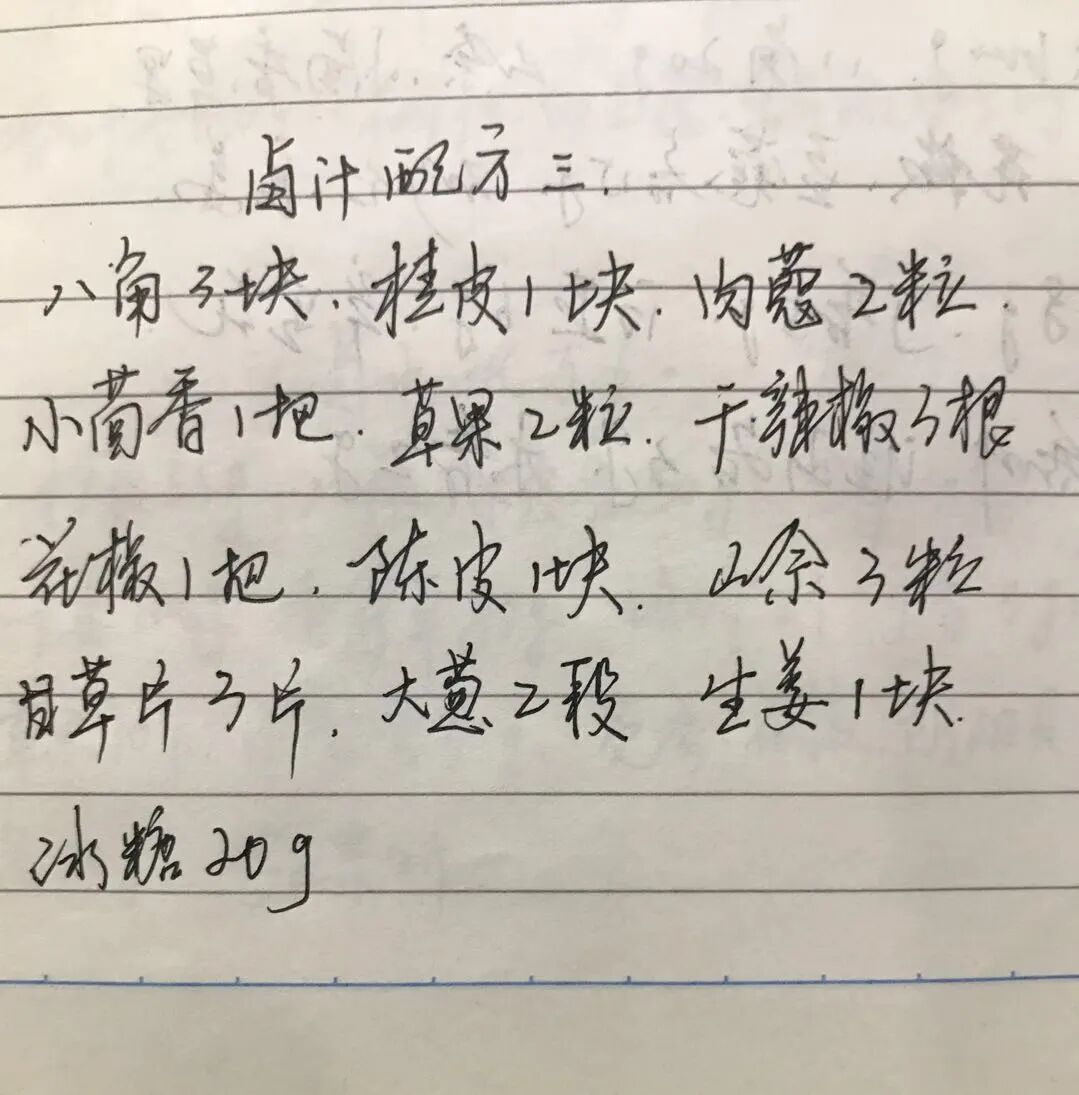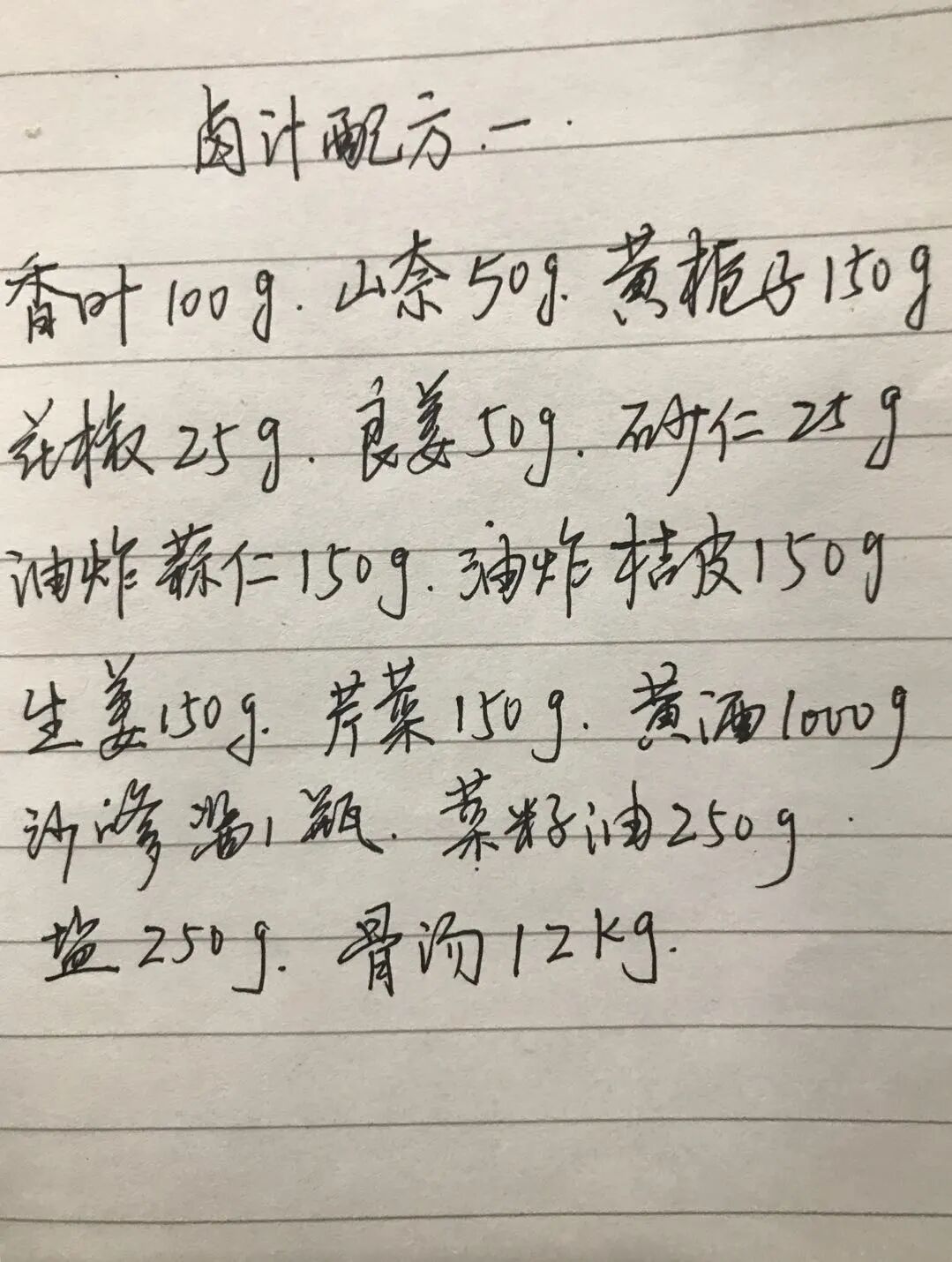 卤菜当作一道传统手艺,通常卤菜世家均绝不会把卤水配方外传的,不过这个李师傅说,这是出自自家的卤菜方子。配方非常齐备的,朋友们谁需要免费公开了,